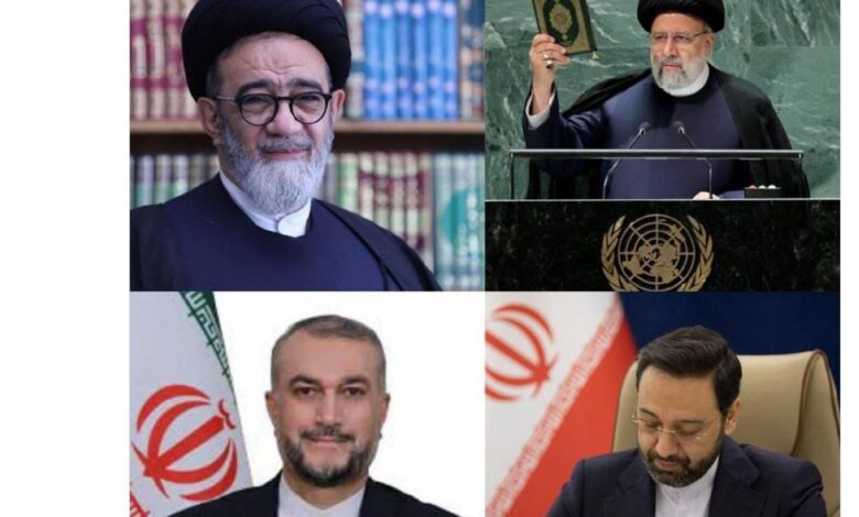 المسؤولون الإيرانيون الأربعة الذين كانوا على متن المروحية بحسب التقارير : إبراهيم رئيسي - رئيس إيران حسين أمير عبد اللهيان - وزير الخارجية. مالك رحمتي - حاكم مقاطعة أذربيجان الشرقية. محمد علي الهاشم – إمام في محافظة تبريز
