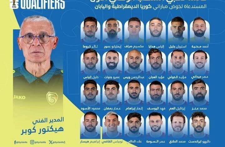 أعلن الأرجنتيني هيكتور كوبر مدرب منتخب سورية الأول لكرة القدم القائمة التي ستخوض مواجهتي كوريا الديمقراطية في لاوس واليابان في هيروشيما مطلع الشهر القادم ضمن تصفيات كأسي العالم وآسيا.