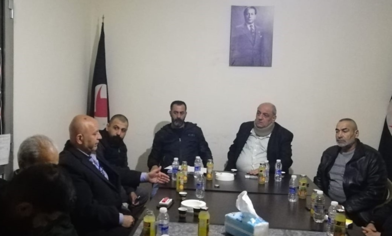استقبل منفذ عام منفذية زحلة في الحزب السوري القومي الاجتماعي أحمد سيف الدين، بحضور أعضاء من هيئة المنفذية، وفدا من “الجبهة الديمقراطية لتحرير فلسطين” ضم عضو اللجنة المركزية عبدالله الكامل ومسؤول منطقة البقاع ومسؤول قطاع الشباب في البقاع.
