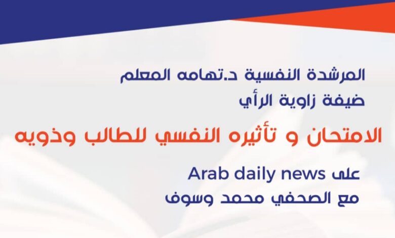 للاسف بعض الأسر تنقل أجواء الامتحان بصورة خاطئة وتبدأ حالة الارتباك لديها وبالتالي تنقل هذا التوتر والخوف والإنفعال الى الطالب وإذا كان الطالب منفعلاً ستؤدي إلى زيادة الاضطراب