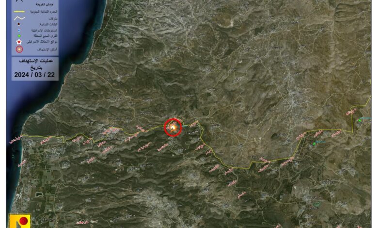 دعماً لشعبنا الفلسطيني الصامد في قطاع غزة وإسناداً لمقاومته الباسلة والشريفة، ورداً على الاعتداءات الصهيونية على القرى الجنوبية الصامدة والمنازل المدنية، استهدف مجاهدو المقاومة الإسلامية عند الساعة 21:50 من مساء يوم الجمعة 22-03-2024 مبنى يتموضع فيه جنود العدو في مستعمرة زرعيت بالأسلحة المناسبة.