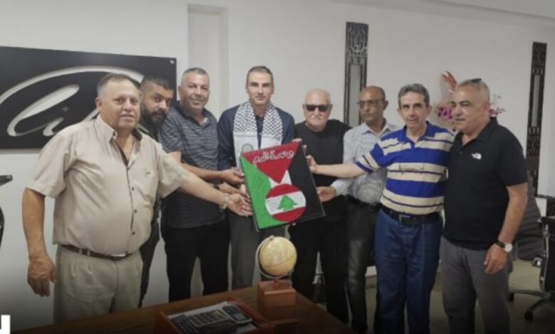 وفي الختام، قدم الوفد لجعفر الكوفية الفلسطينية ودرعا تكريمية فنية عليه العلمان الفلسطيني واللبناني “عربون تقدير ووفاء”