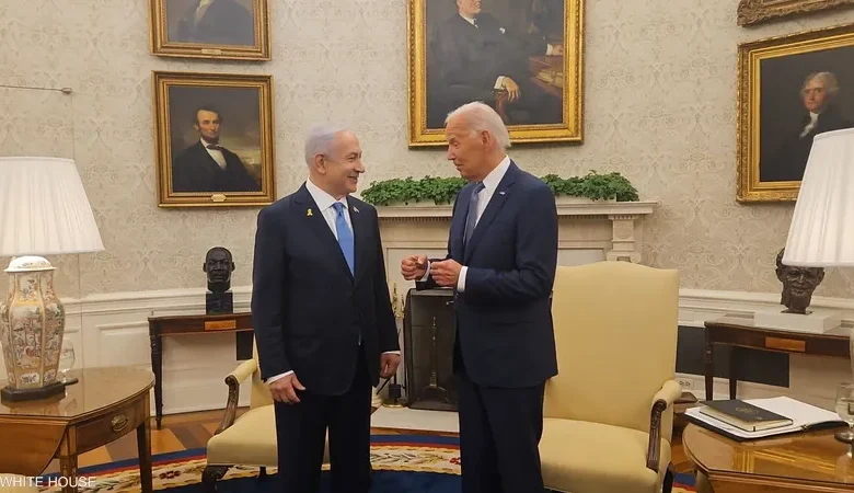 شكر رئيس وزراء العدو الإسرائيلي بنيامين نتنياهو، الرئيس الأميركي جو بايدن، على دعمه لإسرائيل على مدى 50 عاما، وذلك في مطلع اللقاء الذي جمعهما في البيت الأبيض، الخميس.