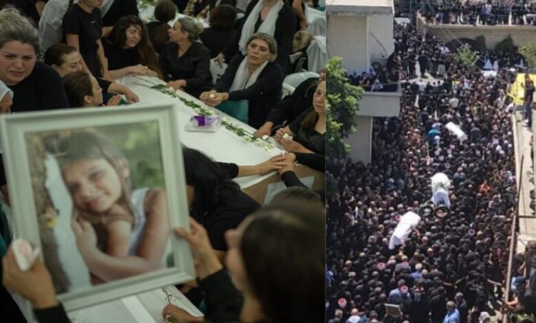 بنعوش بيضاء.. الآلاف يشيعون ضحايا صاروخ مجدل شمس