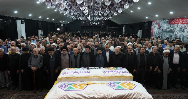 وقبل انطلاق مسيرة التشييع الحاشدة، أقيمت الصلاة على جثماني الشهيدين بإمامة السيد جعفر فضل الله، ثم حمل النعشان اللذان لفا براية جمعية كشافة الإمام المهدي على أكف عدد من العناصر الكشفيين بعد أن وضعت أكاليل من الزهر أمامهما، لتنطلق المسيرة الحاشدة التي تقدمها حملة الصور والرايات والأعلام وصولا إلى روضة الحوراء زينب، حيث ووري جثمانا الشهيدين في الثرى إلى جانب المؤمنين والشهداء.