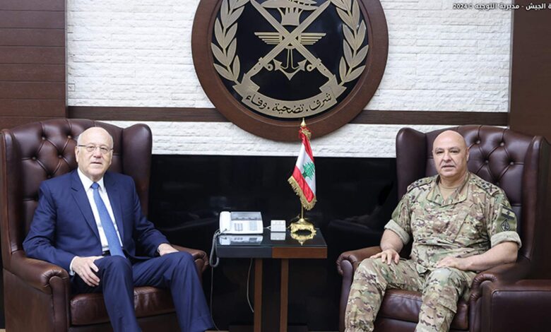 ولفت ميقاتي، من قاعة العماد نجيم حيث التقى الضباط وقائد الجيش العماد جوزاف عون، إلى أنَّ الرهانَ على الضباط ورتباءَ وأفراد.