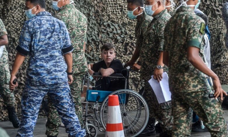 وقال وزير الدفاع الماليزي محمد خالد نور الدين في مؤتمر صحافي لدى وصول المصابين “نقوم بهذه المهمة لأسباب بحت إنسانية ولإظهار تضامننا مع ما يحدث للشعب الفلسطيني”.
