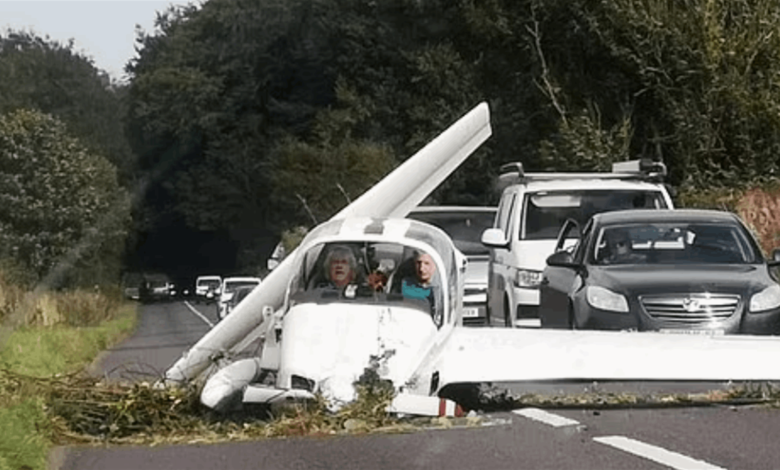 في لحظات خاطفة للأنفاس… طائرة خفيفة على متنها الطيار وراكب سقطت على طريق مزدحم وهذا مصيرهما!