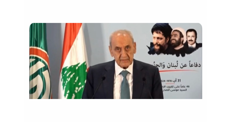 كلام ومواقف الرئيس بري جاءت خلال الكلمة المتلفزة التي وجهها الى اللبنانيين بمناسبة الذكرى السنوية ال 46 لجريمة تغييب الامام السيد موسى الصدر ورفيقيه الشيخ محمد يعقوب والصحافي عباس بدر الدين .