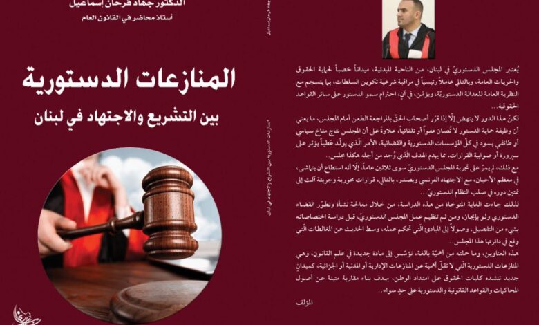 أصدر الخبير الدستوريّ الدكتور جهاد اسماعيل كتابه الثالث “المنازعات الدستورية ” عن دار ناريمان للنشر والتوزيع، حيث تناول السياق التاريخي والمفاهيمي للقضاء الدستوري، ومن ثم تنظيم عمل #المجلس الدستوريّ في لبنان، قبل معالجة اختصاصات المجلس بشيء من التفصيل، وصولاً إلى المبادئ الّتي تحكم عمل المجلس على المستويين الاجرائي والموضوعي، علاوةً على المغالطات الّتي وقع في دائرتها المجلس الدستوريّ.