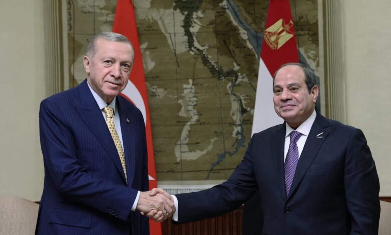 وأظهرت صور نشرتها الرئاسة التركية إردوغان الذي كان استقبله السيسي في القاهرة في شباط/فبراير، وهو يصافح الرئيس المصري عند نزوله من الطائرة.