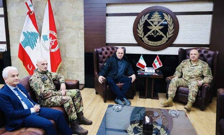 استقبل قائد الجيش العماد جوزاف عون في مكتبه في اليرزة وزير الدفاع الإيطالي Guido Crosetto يرافقه قائد الجيش الإيطالي الجنرال Luciano Portolano بحضور السفير الإيطالي في لبنان Fabrizio Marcelli، وتناول البحث الأوضاع العامة في لبنان والمنطقة، وسبل تعزيز علاقات التعاون بين جيشَي البلدَين.