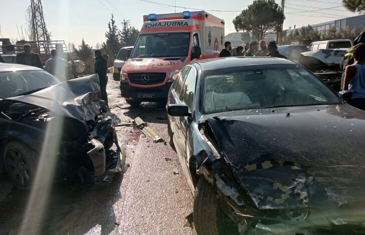 حادث سير بين 3 سيارات عند مفترق قب إلياس في البقاع
