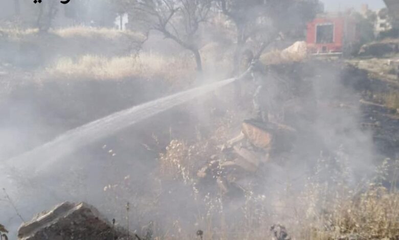أخمد أهالي بلدة نصيب حريقاً نشب على امتداد مساحة 20 دونماً من حقول الشعير في البلدة بمنطقة الطريق العام.