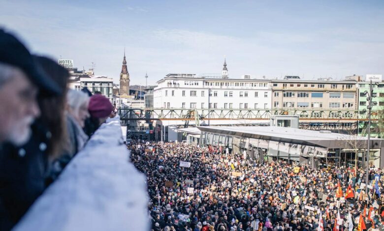 بدأ مؤتمر حزب “البديل من أجل ألمانيا” التمهيدي للانتخابات التشريعية المقرّرة في 23 شباط والذي يعقد في مدينة ريزا في الشرق الألماني، متأخرا ساعتين عن موعده بسبب احتجاجات شارك فيها آلاف الأشخاص وتخلّلتها هتافات رافضة “للنازيين”.