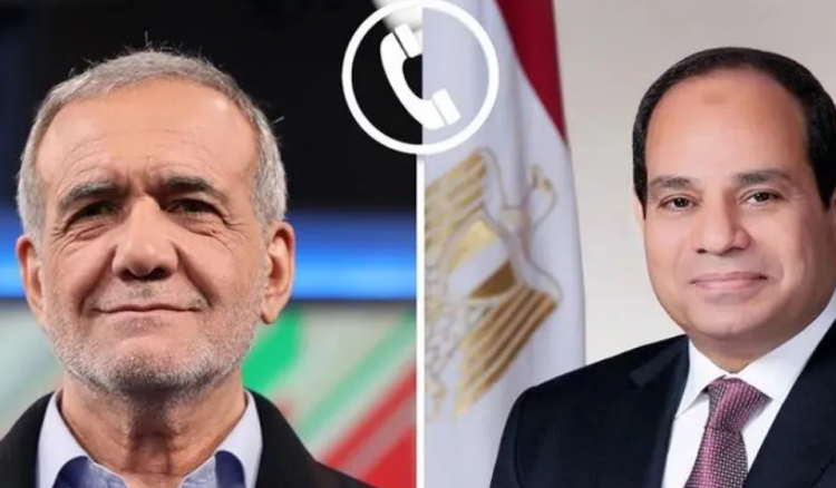جاء ذلك خلال مكالمة هاتفية أجراها السيسي اليوم مع نظيره الإيراني مسعود بزشكيان، وفق المتحدث باسم الرئاسة المصرية.