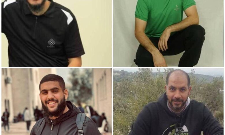 كتائب القسام تزف 4 من مقاوميها وقادتها الميدانيين في الضفة الغربية، بعد اشتباك مع قوات الاحتلال دام اكثر من ١٥ ساعة في دير الغصون شمال طولكرم* *وهم: تامر فقهاء، علاء شريتح، عدنان سمارة، وآسال بشير بدران.*
